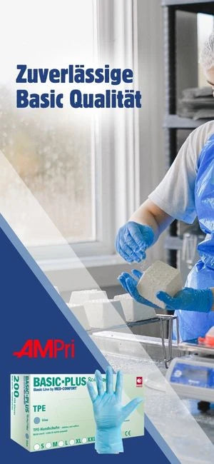 Particularly popular are the AMPri Puracomfort Blue Nitrile Gloves, which impress with their high tear resistance and skin compatibility. Also frequently used are the AMPri Style Latex Black Gloves, which enable precise work thanks to their flexible material and grippy surface. For lighter tasks, the AMPri Med-Comfort TPE Gloves are suitable, considered a particularly economical solution for short usage times.
