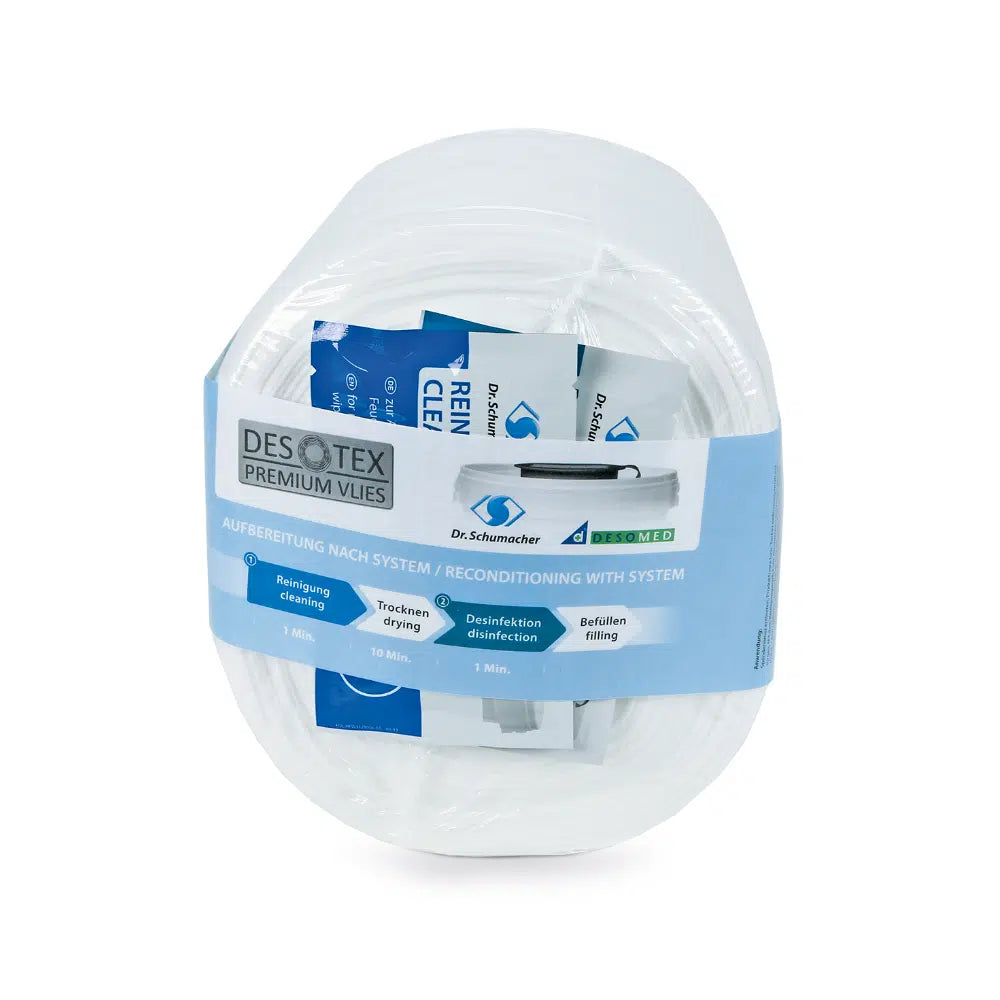 The dry Dr. Schumacher Eco Wipes nonwovens are soaked with the surface disinfection. They serve to quickly and uncomplicated disinfection and cleaning of areas and medical devices. The non -woven cloths are made of high quality, low -lint Desotex® non -woven fabric. Due to the cross -networked structure, Eco Wipes are very hard -wearing and particularly tear -resistant. Each refill package is included in the Desotex® preparation towels, which enable hygienic preparation before refilling the non -woven cloth dispenser.