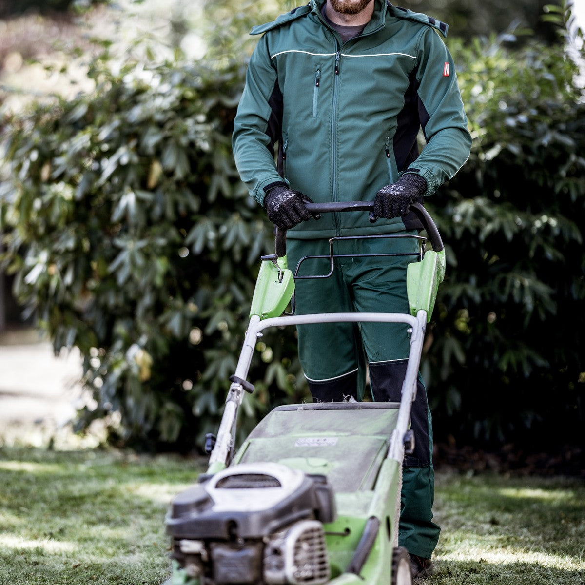 Die NITRAS MOTION TEX LIGHT Softshelljacke in Grün/Schwarz (Farbcode: 3010) überzeugt durch ihr hochwertiges Softshell-Material mit einer Grammatur von 310 g/qm, das sowohl wasser- als auch windabweisend ist. Der verlängerte Rücken sorgt für zusätzlichen Schutz, während der Stretchanteil optimale Bewegungsfreiheit garantiert. Mit Klettverschluss und Gummizug an den Ärmelabschlüssen sowie Kordelzug im Saum lässt sich die Passform individuell anpassen. Der sportliche Look wird durch Reflexelemente für bessere Sichtbarkeit ergänzt. Ein Stehkragen, ein durchgängiger und farblich angepasster YKK-Reißverschluss mit Kinnschutz sowie ein doppellagiger Windstopper innen bieten zusätzlichen Komfort. Praktische Innen-, Brust- und Seitentaschen sorgen für ausreichend Stauraum. Die Jacke ist OEKO-TEX STANDARD 100® zertifiziert und in Regular Fit für Herren erhältlich. Eine abnehmbare Kapuze ist optional verfügbar.
