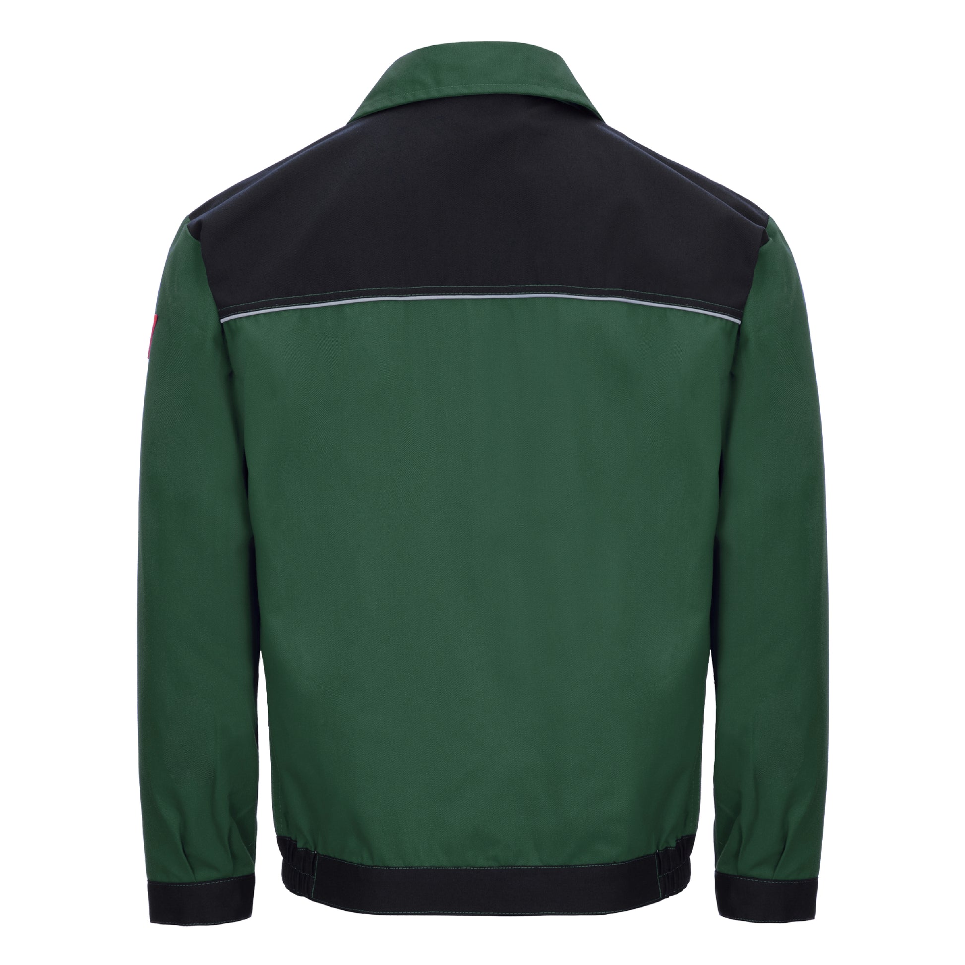 The NITRAS MOTION TEX LIGHT work jacket in green/black (color code: 3010) impresses with its breathable and light material with a weight of 245 g/m², which ensures a high level of comfort. It offers adjustable cuffs with buttons, an elasticated waistband and a collar for an optimal fit. The jacket is equipped with reinforcements on the shoulders, pockets and waistband, which increases its durability. A full-length zipper with snap button closure at the waistband and an external wind stopper provide additional protection. Reflective elements improve visibility in low light conditions. Practical details such as two breast pockets with flaps, a patch smartphone pocket, two pen pockets and side pockets as well as an inside pocket make this jacket particularly functional. The jacket complies with the OEKO-TEX STANDARD 100® and has a regular fit.