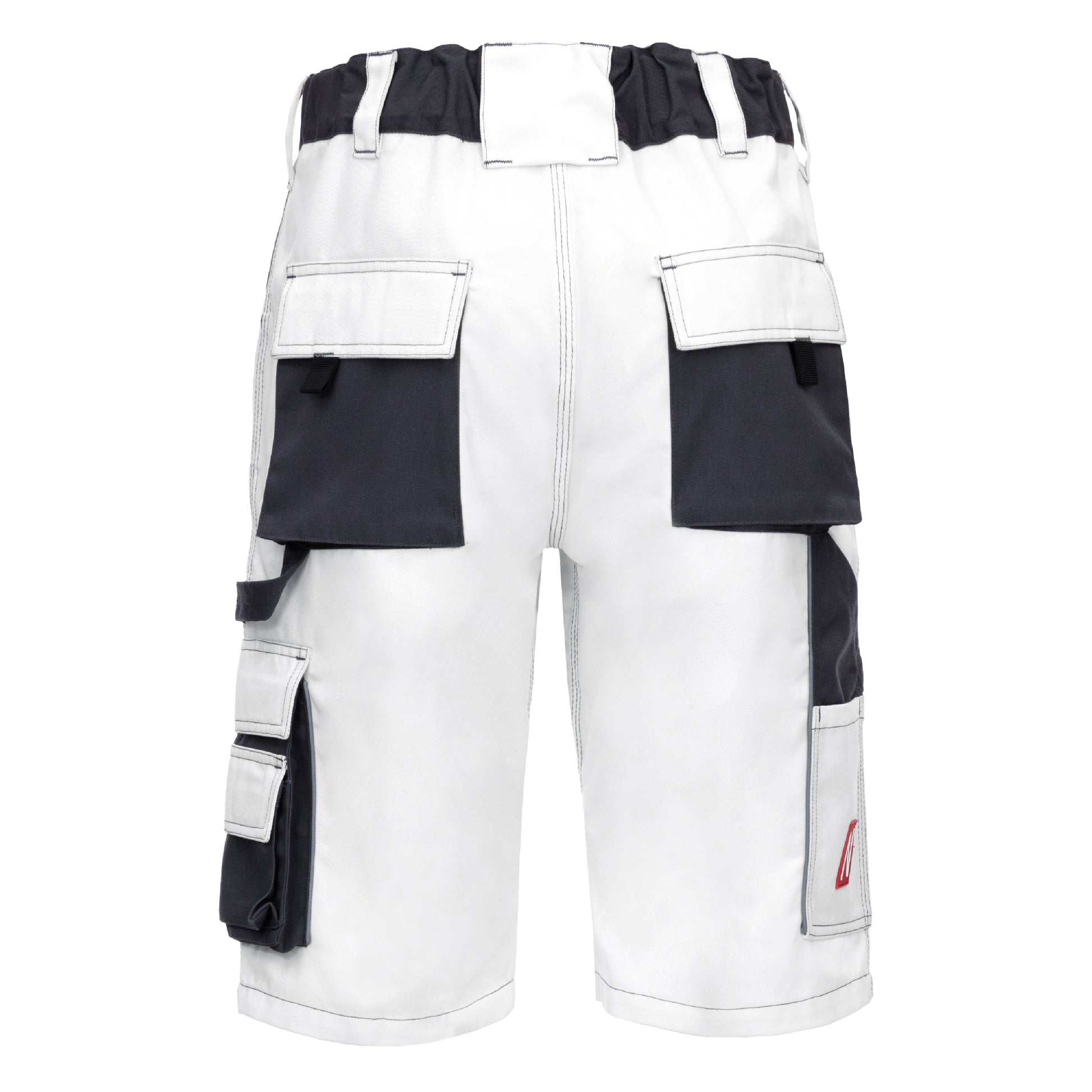 The NITRAS MOTION TEX PLUS short work trousers in white and gray (color code: 1112) are the ideal choice for anyone who values quality and comfort at work. Made from a breathable material with a weight of 280 g/sqm, these trousers offer a high level of comfort and durability. The stretchy waistband with a raised back ensures an optimal fit, while reinforcements on the back belt loop and canvas on the back and leg pockets provide additional stability. Robust triple seams and a hidden button to protect against scratches underline the well-thought-out construction. Reflective elements improve visibility in low light conditions. Practical extras such as thigh pockets with flaps, a ruler pocket with a patch pocket, a hammer loop and a D-ring make these trousers an indispensable companion in everyday work. Certified according to OEKO-TEX STANDARD 100®, it guarantees a comfort fit.