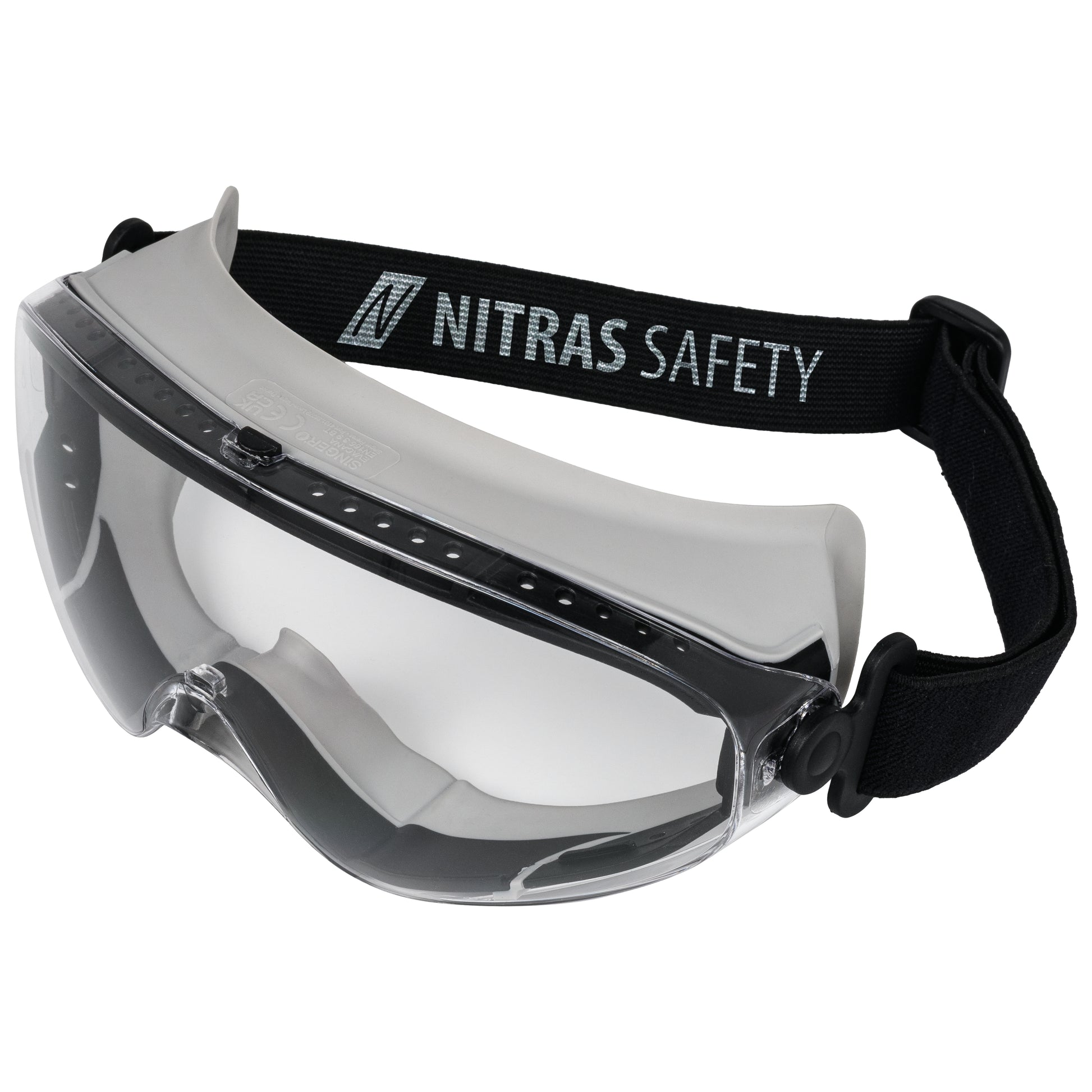 The NITRAS VISION PROTECT full-vision goggles impress with their modern design and maximum functionality. With a gray/black support body and transparent lenses (color code: 1412), it ensures clear visibility and reliable protection. The clear tint, fog resistance and scratch-resistant coating offer long-lasting performance, while the integrated ultraviolet protection filter effectively protects your eyes. The large panoramic window enables an excellent field of vision and optimal color recognition. Thanks to the flexible, length-adjustable headband and the well thought-out ventilation openings, perfect wearing comfort is guaranteed - even for people who wear glasses. The glasses are designed for long-term use and meet PPE risk category II according to EN 166.