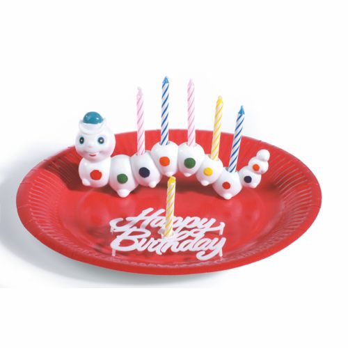 PAPSTAR Halter for birthday candles 6.5 cm x 15 cm "Würmli" with 6 candles | Blister (1 piece)